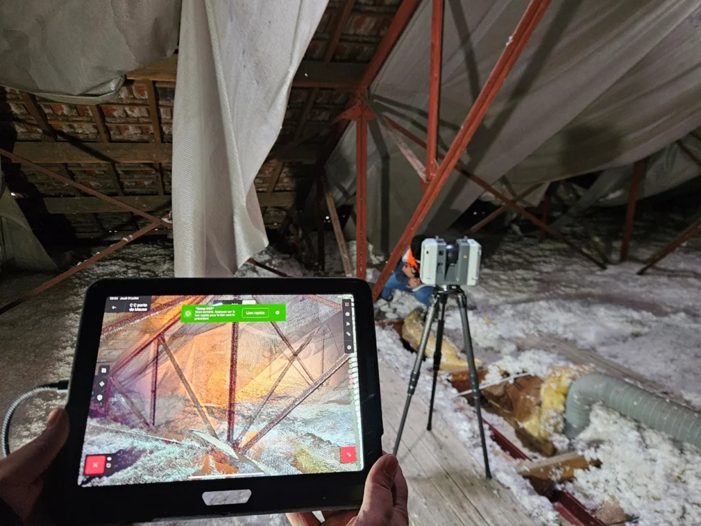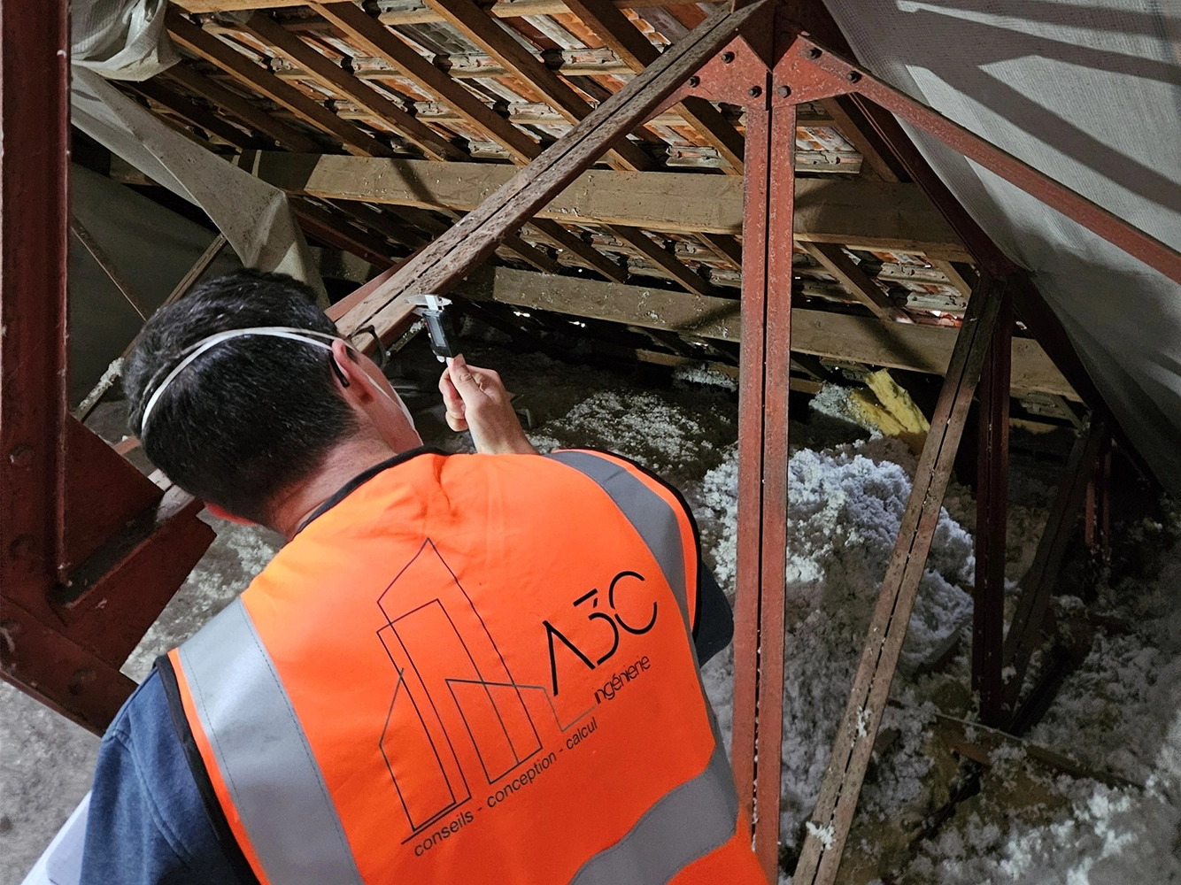 Nos ingénieurs ont réalisé une modélisation complète de la structure selon les Eurocodes (0, 1, 3 et 5). L’analyse a révélé que, bien que l’état sanitaire soit bon, la structure actuelle ne permettait pas l’ajout d’équipements en l’état. Nous avons identifié des risques d’instabilité sur les montants, les diagonales et les pannes. A3C INGÉNIERIE a donc conçu un plan de renforcement ciblé : pose de doubles cornières sur les fermes, moisage structurel des pannes en bois et installation d’une poutre au vent pour assurer la stabilité transversale.