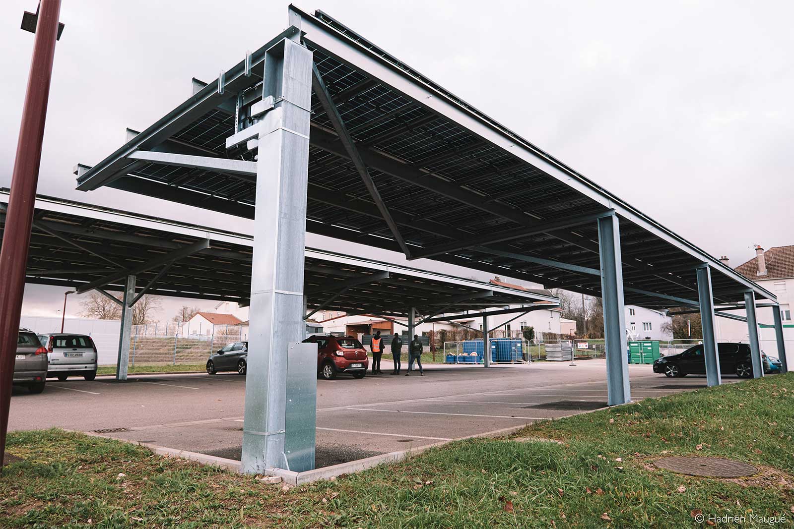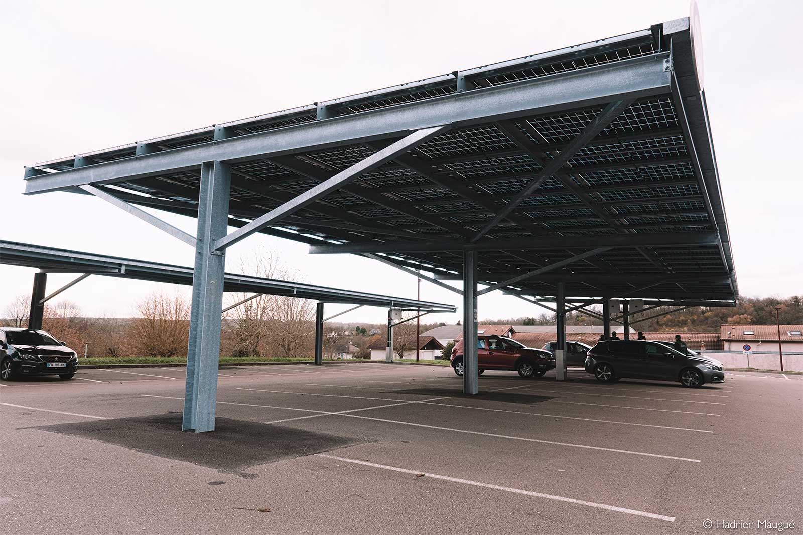 Contexte et Enjeux Dans le cadre d’un projet de production d’énergie renouvelable de la Communauté de Communes de Mirecourt Dompaire à Mirecourt (88), le parking de la piscine municipale devait être équipé d’ombrières photovoltaïques. L’enjeu principal était de concevoir une structure capable de supporter des panneaux solaires tout en garantissant une sécurité totale face aux sollicitations climatiques vosgiennes, notamment les charges de neige (Région A1) et de vent (Région 2).